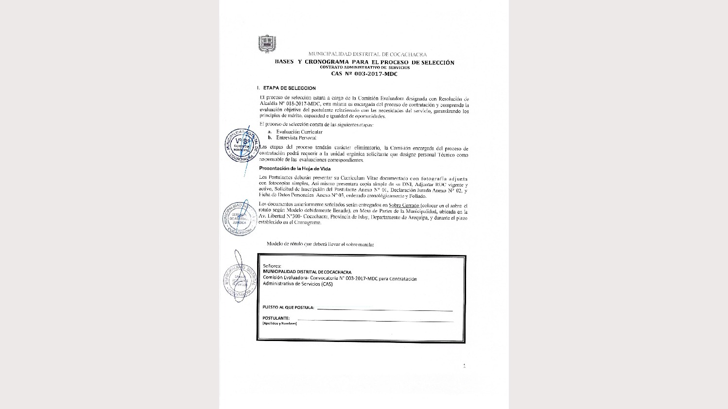 Bases Convocatoria CAS N 003-2017-MDC