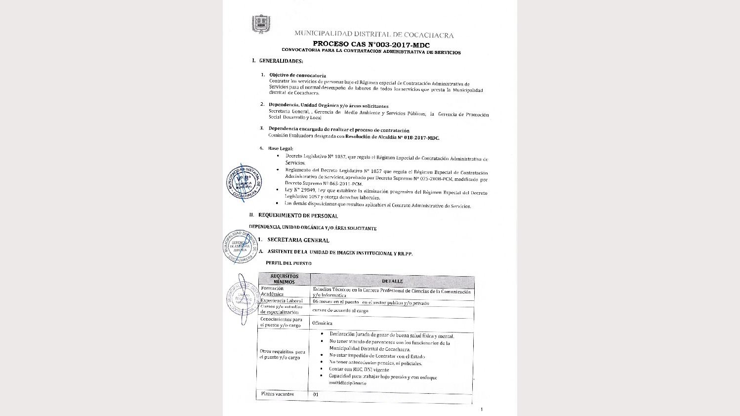 CONVOCATORIA CAS N°004-2017-MDC