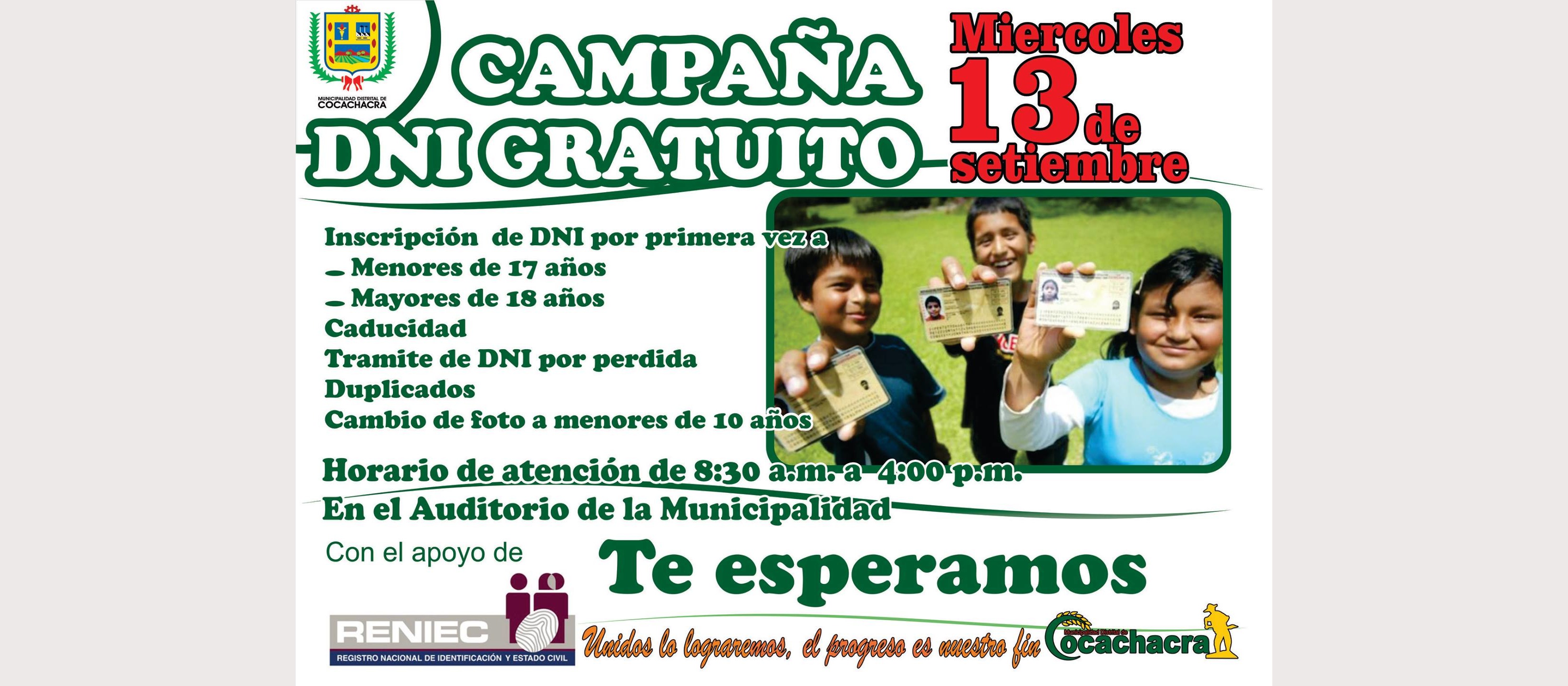 Campaña de DNI Gratuito Miercoles 13 de Setiembre