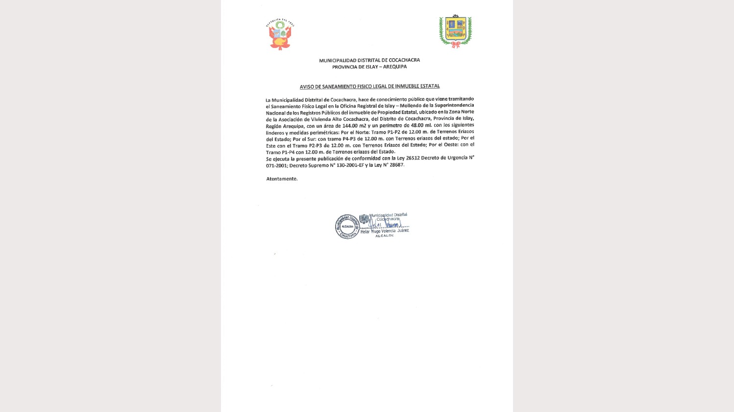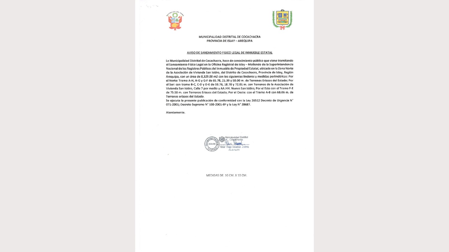 Aviso Saneamiento Fisico Legal de Inmueble Estatal