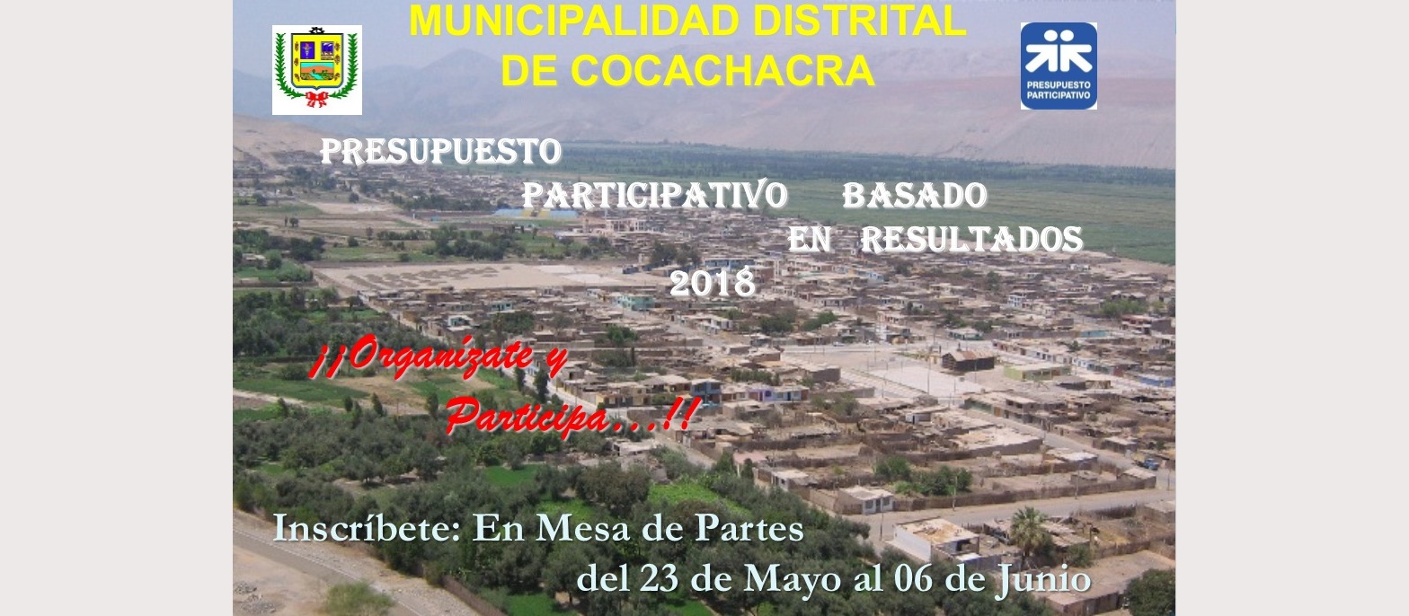 Proceso del Presupuesto Participativo Basado en Resultados para el ejercicio 2018 de la Municipalidad Distrital de Cocachacra