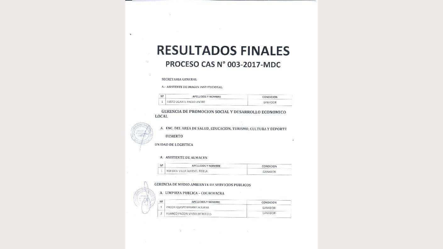 Resultado Final CAS N° 003-2017-MDC